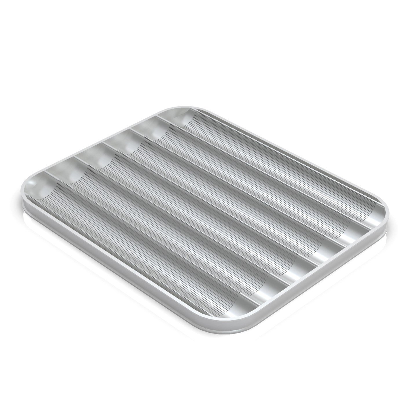 Les moules à baguette sont les auxiliaires indispensables des producteurs pendant la période allant de la fermentation de la pâte à la cuisson et à la présentation sur le comptoir, ce qui permet à la pâte placée à l'intérieur d'être cuite de manière plus hygiénique et plus homogène sans contact avec le sol.